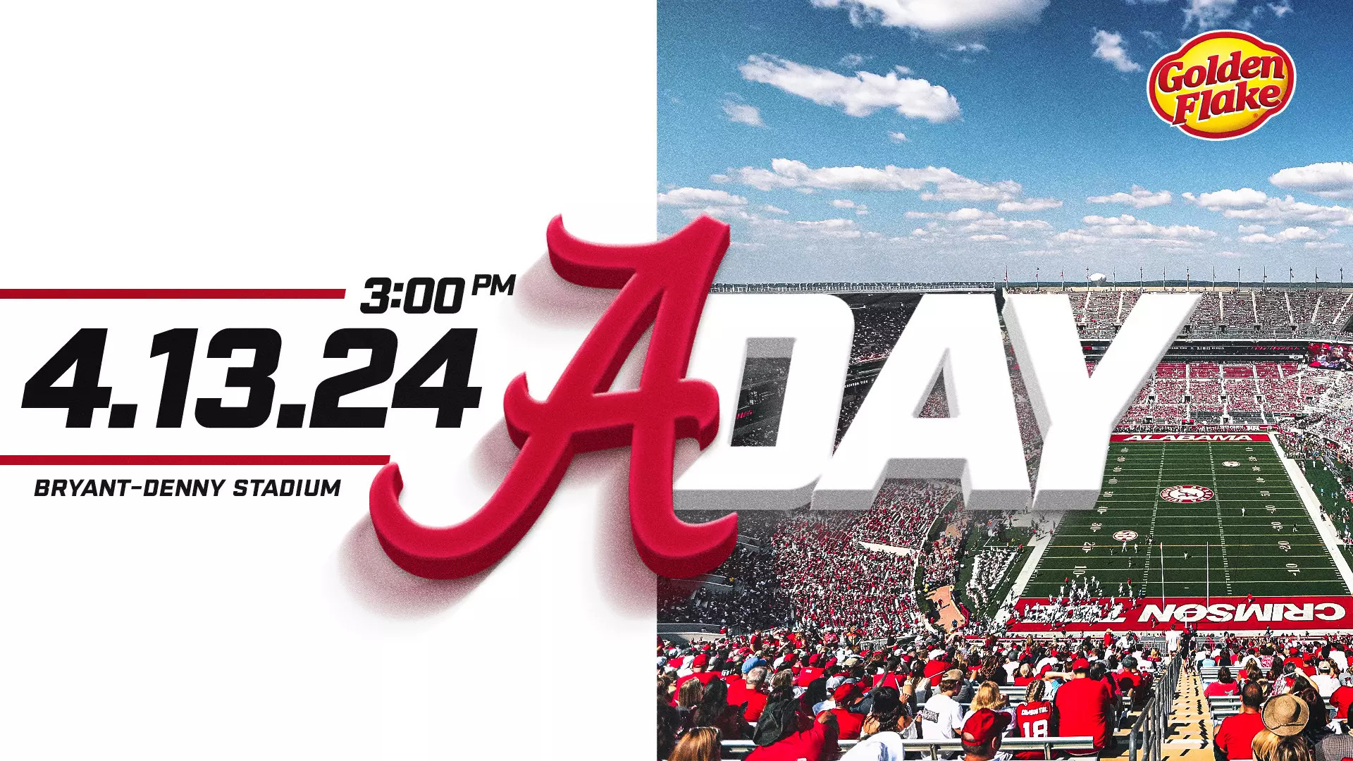 TUSCALOOSA, Ala. – The 2024 Alabama Golden Flake A-Day Game will be played on Saturday, April 13 at 3 p.m. CT in Bryant-Denny Stadium and will include a full day of activities and experiences.