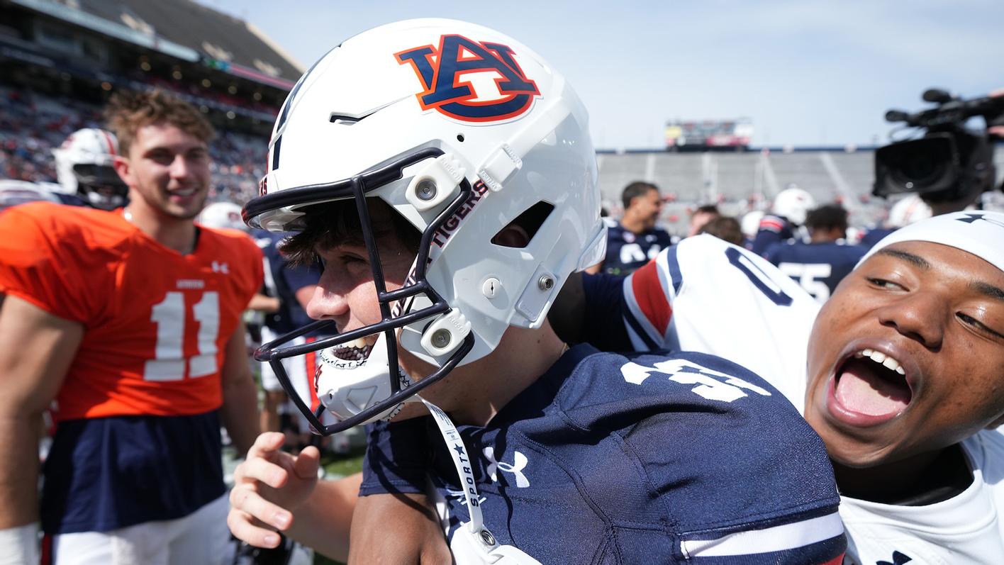 “Thankful for such a beautiful day for A-Day,” Auburn coach Hugh Freeze said. “To walk into the stadium and to see all our cheerleaders, our band and fans show up for a spring game like today just tells you about the Auburn spirit, the Auburn Family.