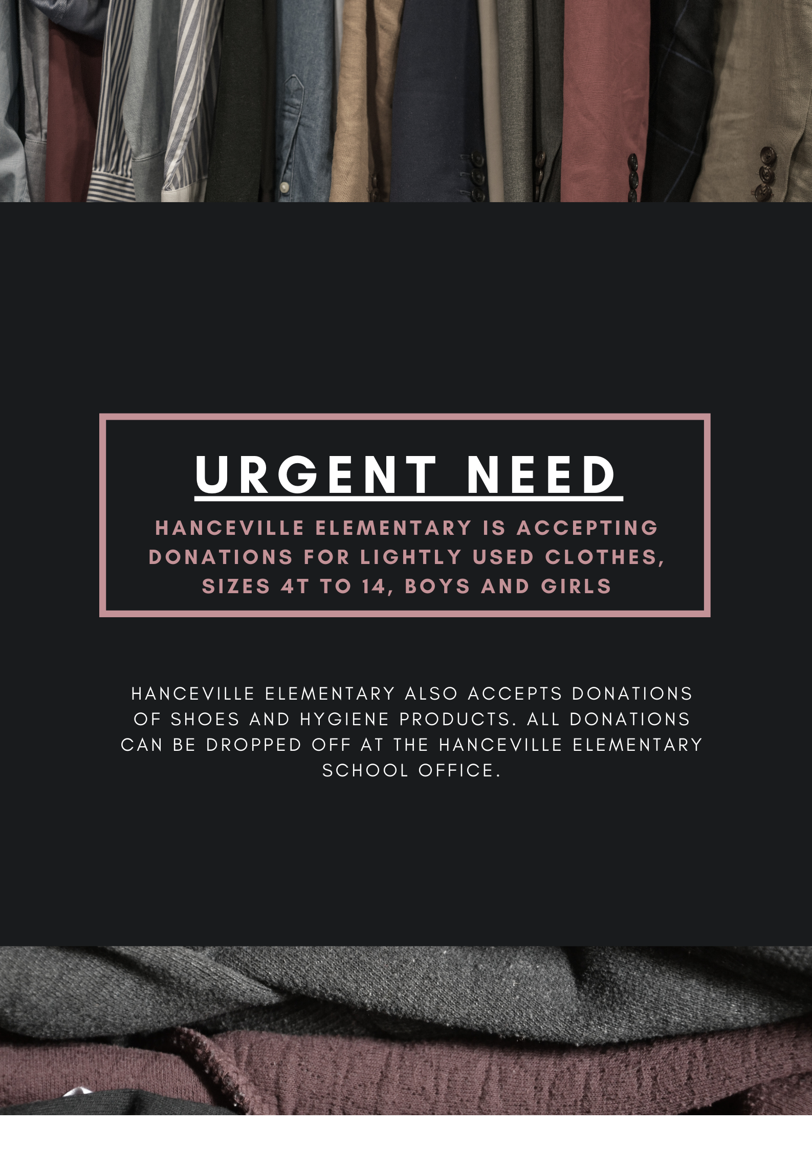 Community members who wish to contribute can bring donations of clothing and hygiene products directly to the school office. Every donation can make a significant difference in ensuring that all students have access to the essentials they need to feel comfortable and confident at school.