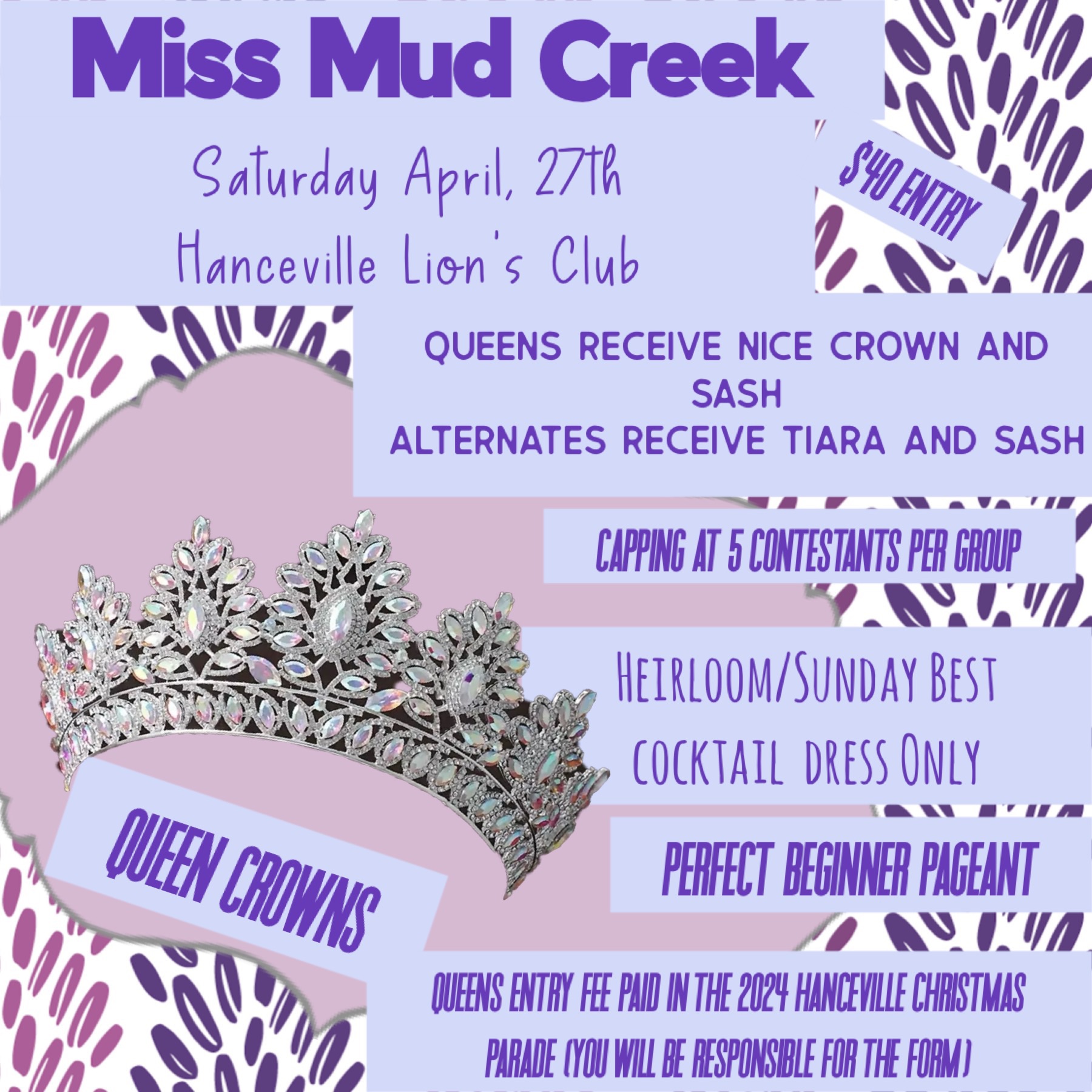 For additional details or to register, interested parties can visit the Miss Mud Creek event page on Facebook or contact Hannah Gore directly at hgore04@gmail.com.
