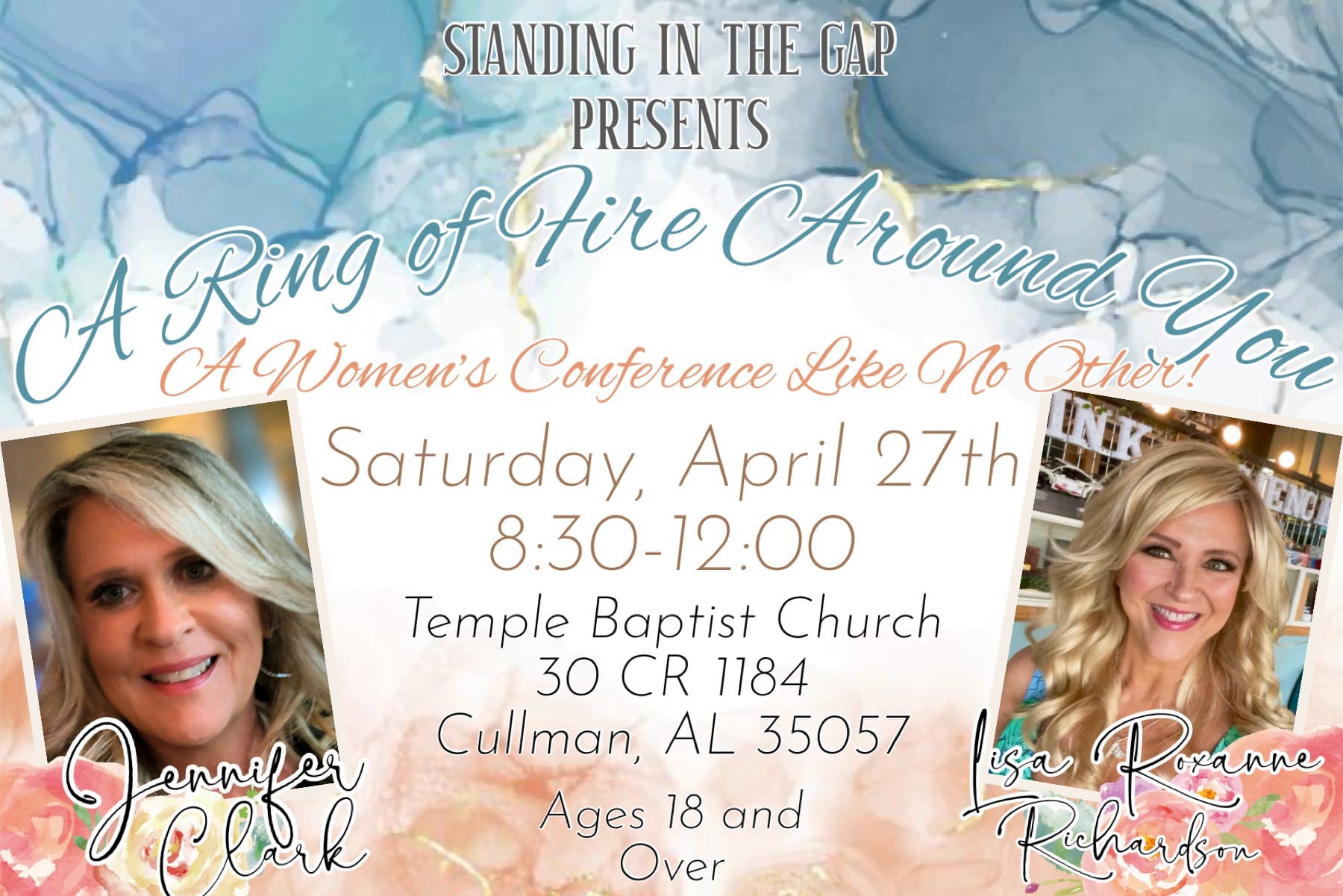 Temple Baptist Church is set to host the “Ring of Fire Around You” Women’s Conference on Saturday, April 27, from 8:30 a.m.-noon. Organized by Standing in the Gap ministries, the conference aims to address critical issues affecting women today, including domestic violence, generational legacies and self-worth, through a Christian perspective.