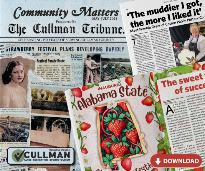 Thanks to our advertisers for making this possible! Get your copy at one of the business below, The Cullman Tribune office or read online at https://cullmantribune.com/cullman-community-matters-magazine