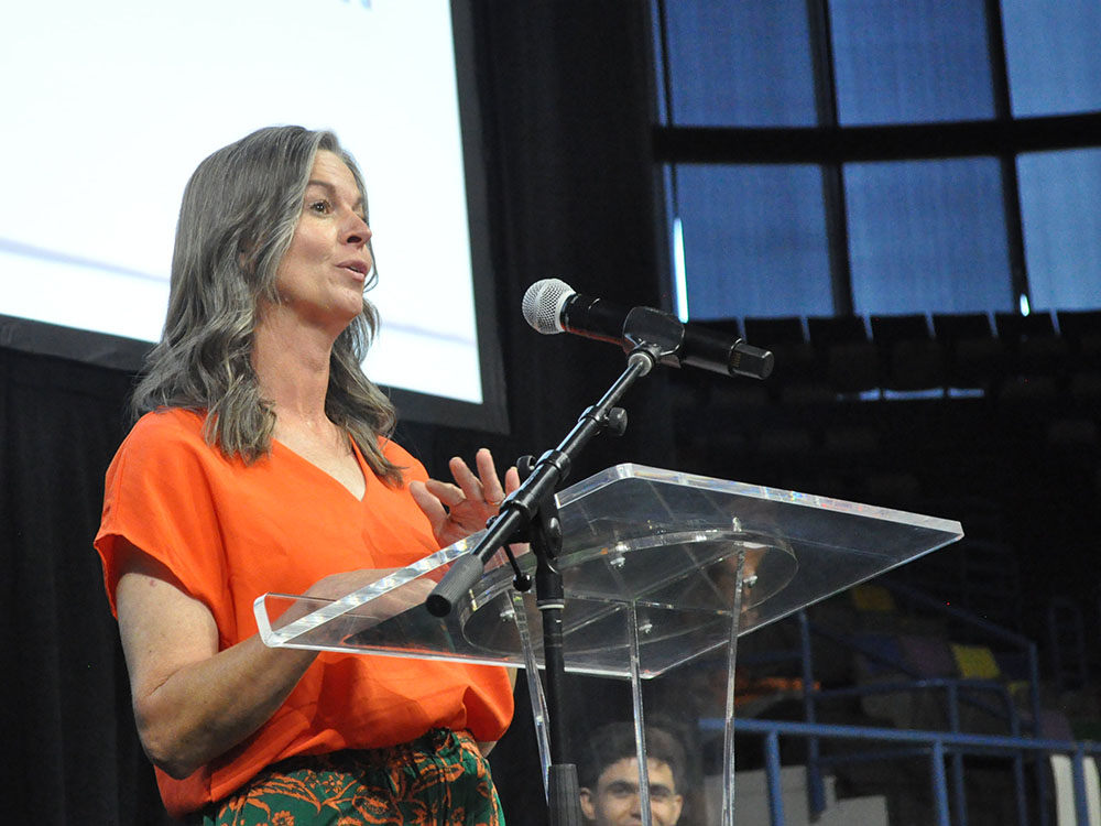Wallace State student Vickie Westbrook speaks expressed her appreciation to donors to the Future Foundation. Thanks to a scholarship she received, Westbrook will graduate this month debt free. (Wallace State)