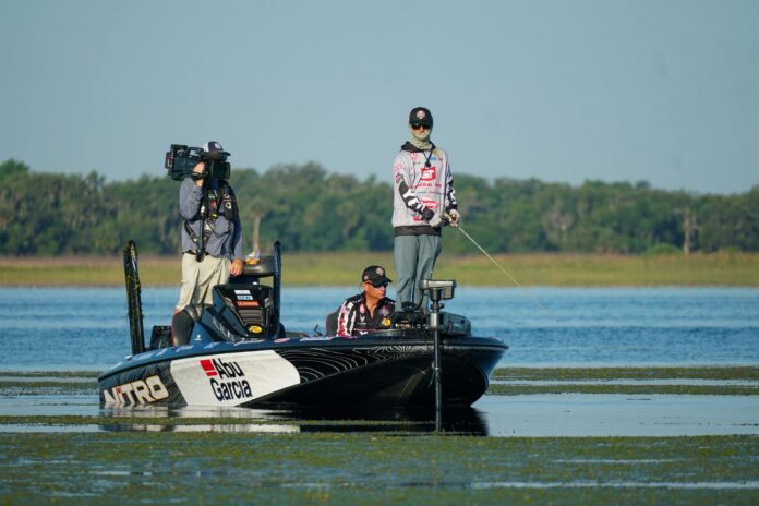 Lee spent much of the day exploring new water, looking for more schools of bass living in the matted hydrilla on Lake Toho. He’s optimistic he found a few spots that could produce if the bite falters in his Day 1 area, including the one that produced his 6-pounder just before lines out.
