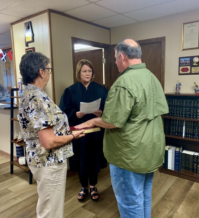 The Honorable Judge Tammy Brown performed the swearing in after asking Campbell’s wife, Teresa, to hold the Bible.