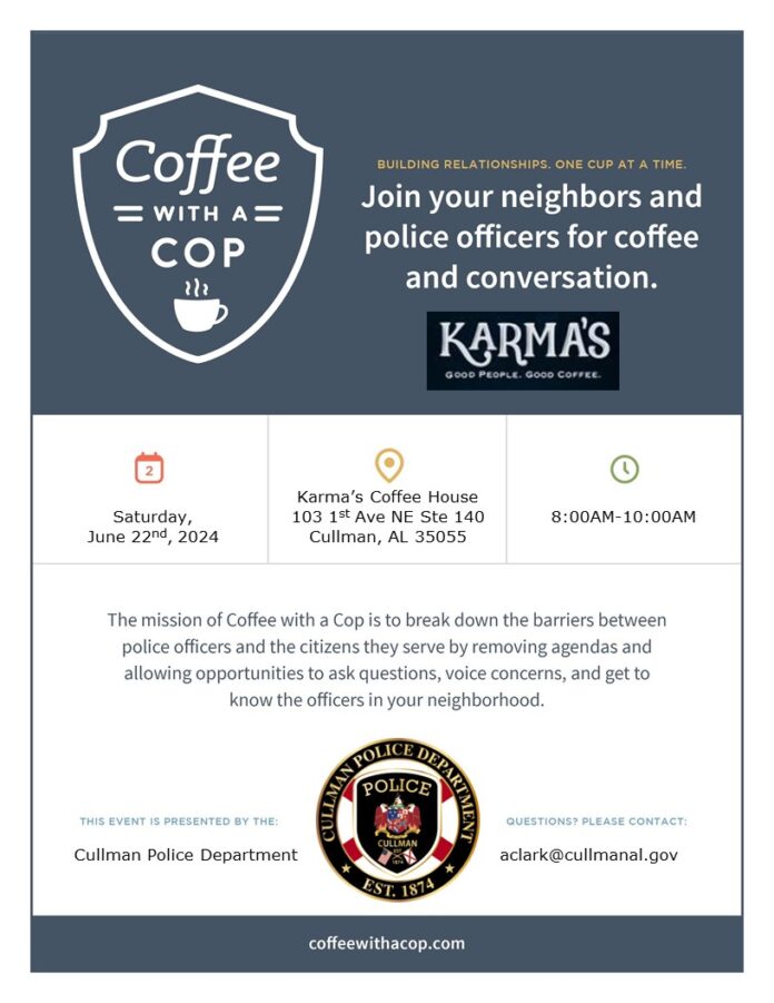 CULLMAN, Ala. – The Cullman Police Department began hosting Coffee with a Cop events almost  a decade ago as a way to bridge the gap between law enforcement officers and local residents.