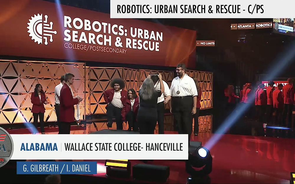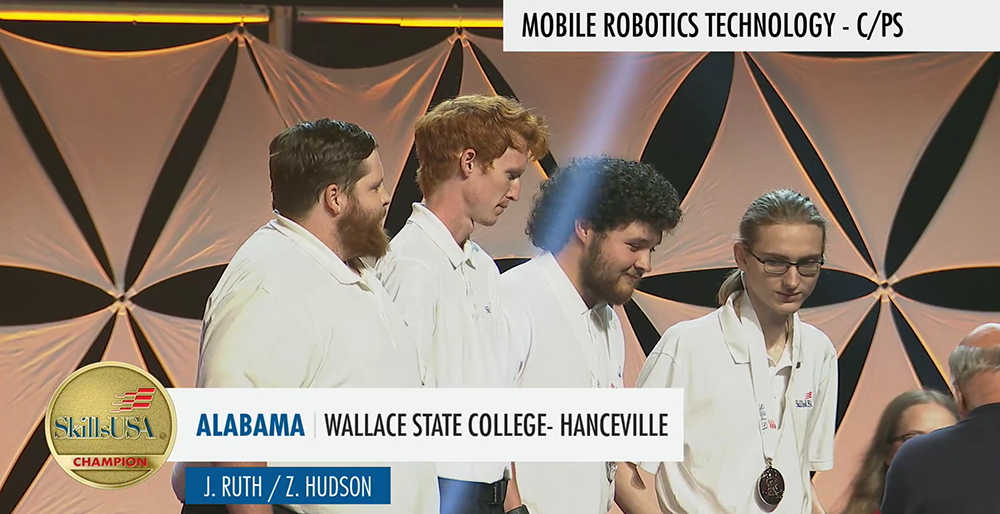 Wallace State students Justin Ruth and Zach Hudson, both of Hanceville, earned gold medals in Mobile Robotics Technology at the 2024 SkillsUSA National Leadership and Skills Conference.