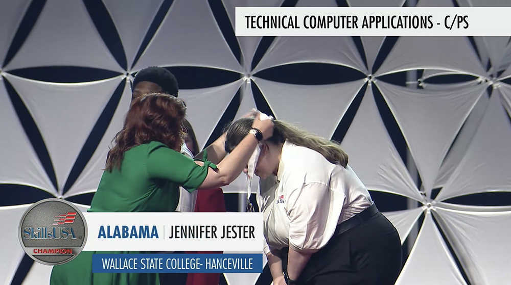 Jennifer Jester of Cullman accepts a silver medal in Technical Computer Applications.
