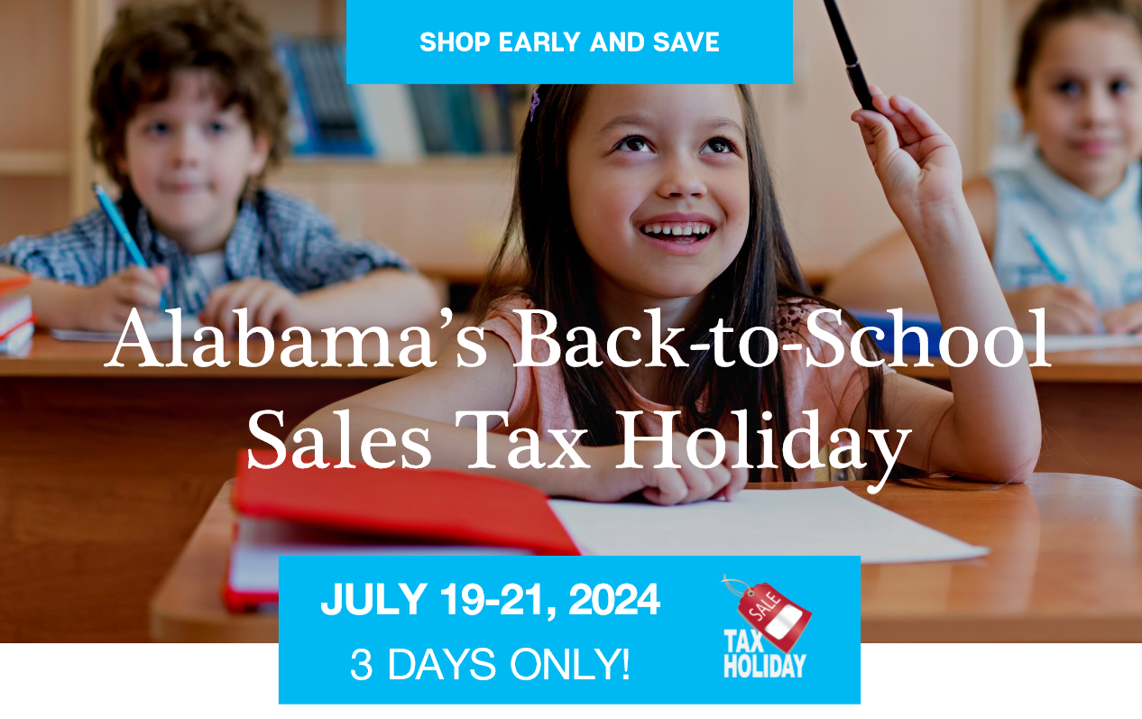CULLMAN, Ala. – Alabama’s 19th annual sales tax holiday for school-related items begins at 12:01 a.m. Friday, July 19, 2024, and ends at midnight Sunday, July 21, 2024. This is your chance to save while shopping for school-related items in preparation for the upcoming school year. This tax-free weekend allows shoppers to purchase a variety of essential items without the added cost of sales tax.