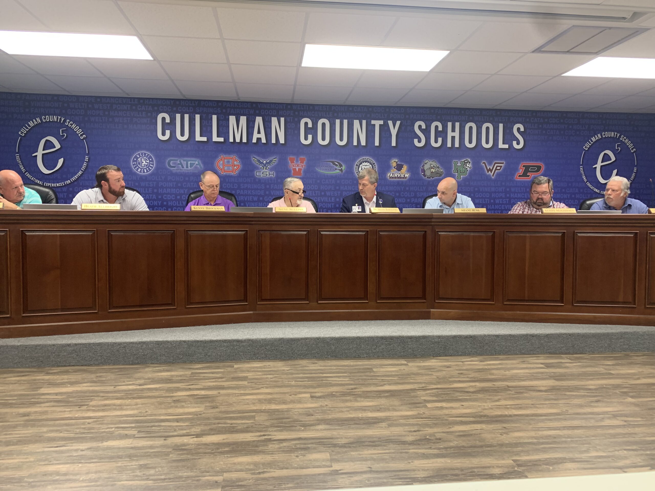 During the Superintendent’s Report, Barnette shared some important upcoming dates for Cullman County Schools students and families. Open House throughout the county will be held on Tuesday, Aug. 6 from 3-6 p.m.; check individual school Facebook pages or contact them directly for specific dates and times. Thursday, Aug. 8 is the first day of school in Cullman County Schools only for students with a last name beginning with the letters A-K, and only students with last names beginning with L-Z will attend on Aug. 9. All Cullman County Schools students will attend Monday, Aug. 12.