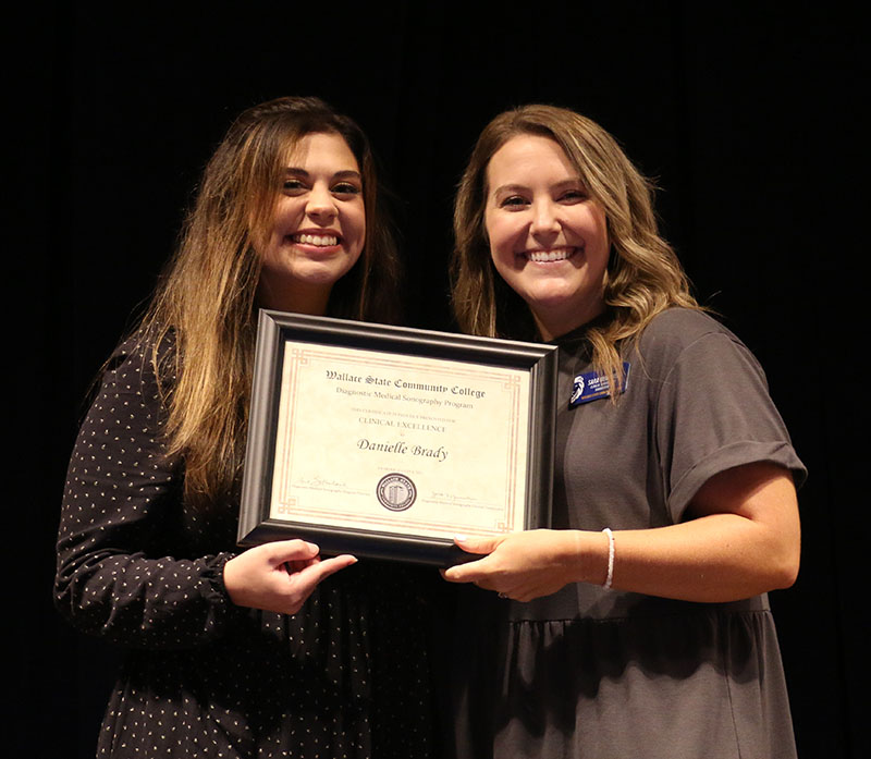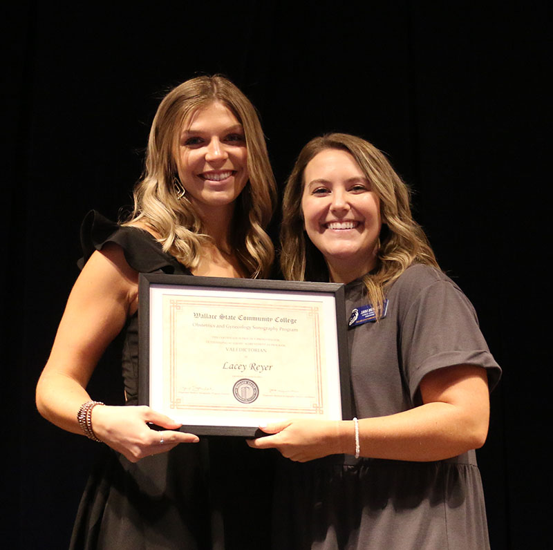 HANCEVILLE, Ala. –  Wallace State Community College’s Diagnostic Medical Sonography program recently celebrated the success of 13 students in its OB/GYN pathway with a pinning ceremony attended by graduates, family and friends. As each graduate walked across the stage, the letters RDMS were added after their name, because all of them have already passed their OB/GYN registry exam and are registered sonographers.