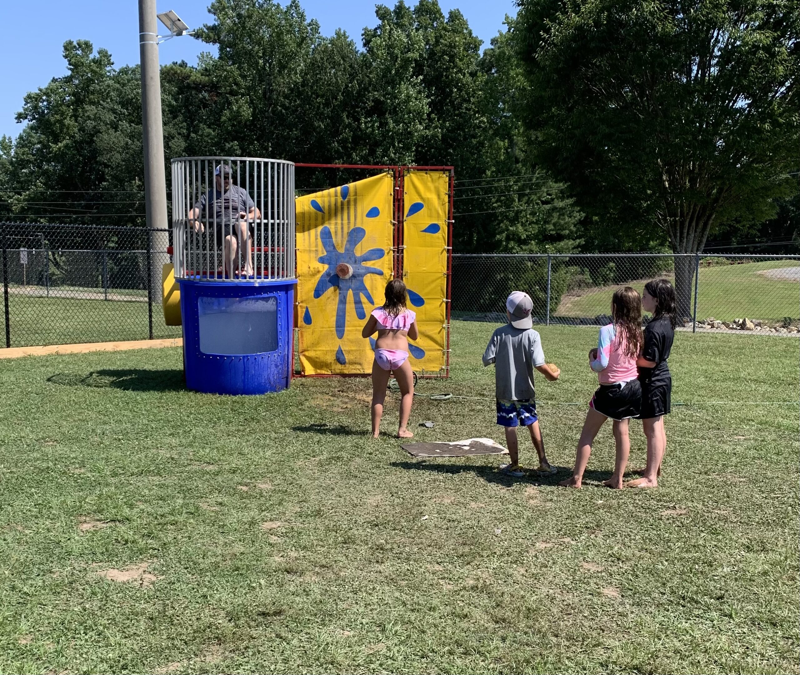 The students in attendance weren’t the only group to have the opportunity to cool off in the hot Alabama sun. The event also hosted a dunking booth, complete with a steady lineup of West Point community members and officials hoping to add to the laughs and good times. Blake Thompson, principal of West Point Middle School, and Michael Lindsey, principal of West Point Elementary School, even took their turns in the game of aim during the bash in an effort to give the entrance to the school year a memorable beginning.