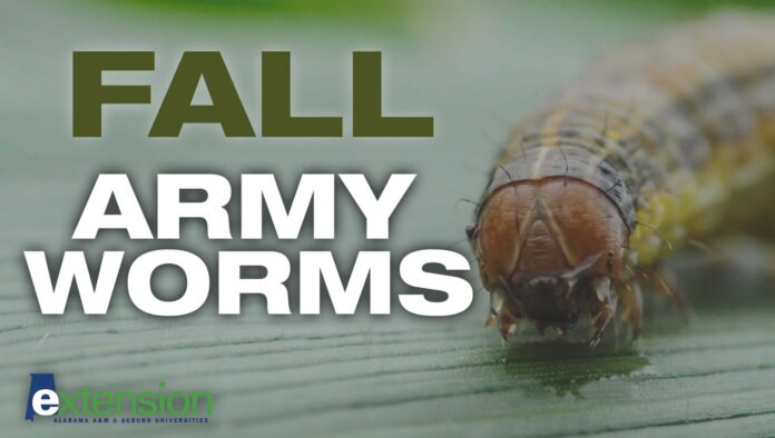 For more information on controlling armyworms, read Control Options for Fall Armyworms or Management of Fall Armyworm in Pastures and Hayfields, both available at www.aces.edu.