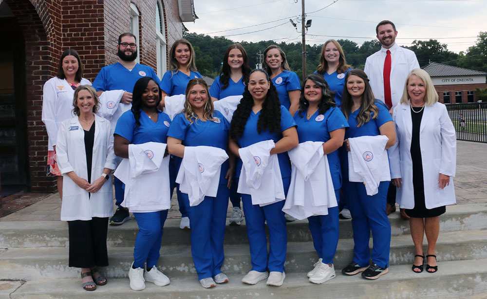 Members of the inaugural nursing class at Oneonta include Samantha Bynum of Oneonta, Bonnie Chasteen of Cleveland, Andriana Doyle of Oneonta, Porsha Foster of Center Point, Annagrace Harper of Anniston, Kierra Jackson of Moody, Brannen Johnson of Gadsden, Cierra Murray of Pinson, Camryn Norman of Odenville, Whitney Sullivan of Pinson, Megan Weaver of Birmingham, Miranda Wells of Oxford, and Shelby Wilkinson of Trussville.