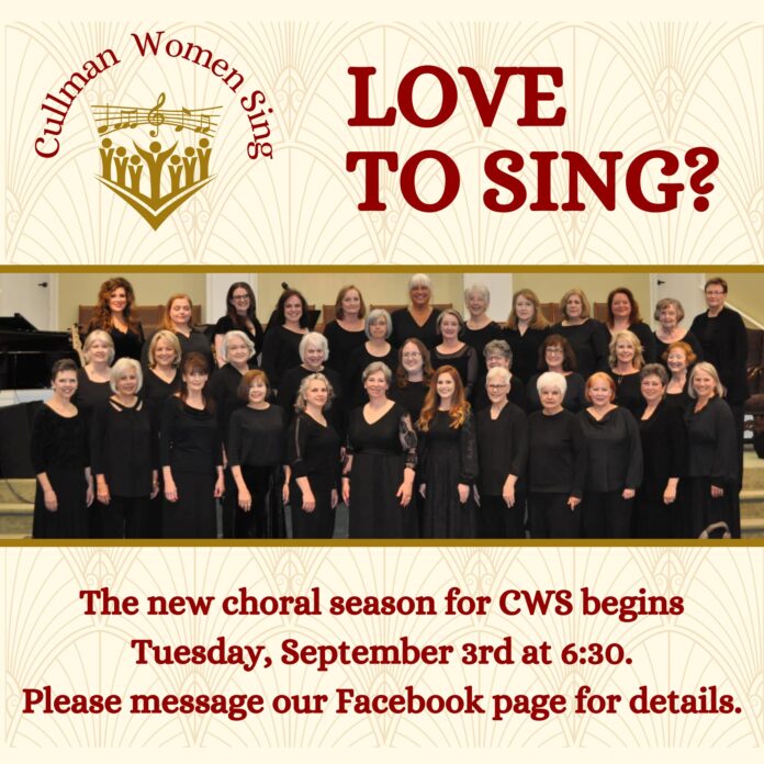 CULLMAN, Ala. – Cullman Women Sing is gearing up for an exciting new choral season, and the first rehearsal will take place on Tuesday, Sept. 3, at 6:30 p.m. at Seventh Street Baptist Church. The group, consisting of women aged 18 and older from the Cullman area, is open to those who share a love for singing and a passion for community music.