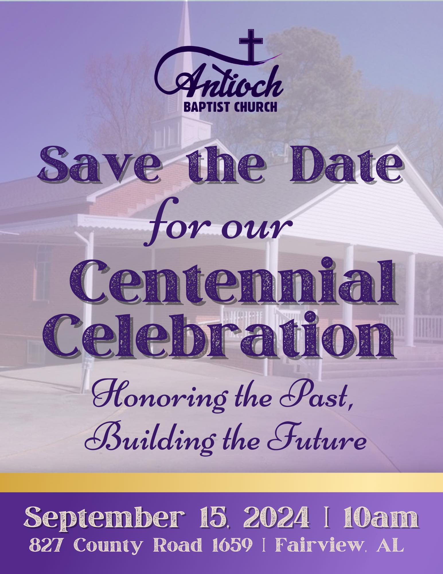 FAIRVIEW, Ala. – Antioch Missionary Baptist Church will celebrate its 100-year anniversary on Sunday, Sept. 15, at 9:45 a.m., marking a century of faith, community and service. The centennial event will feature a historical display of photos and documents, as well as a potluck lunch, with attendees encouraged to bring their favorite side dish or dessert. All are welcome to join in the celebration.