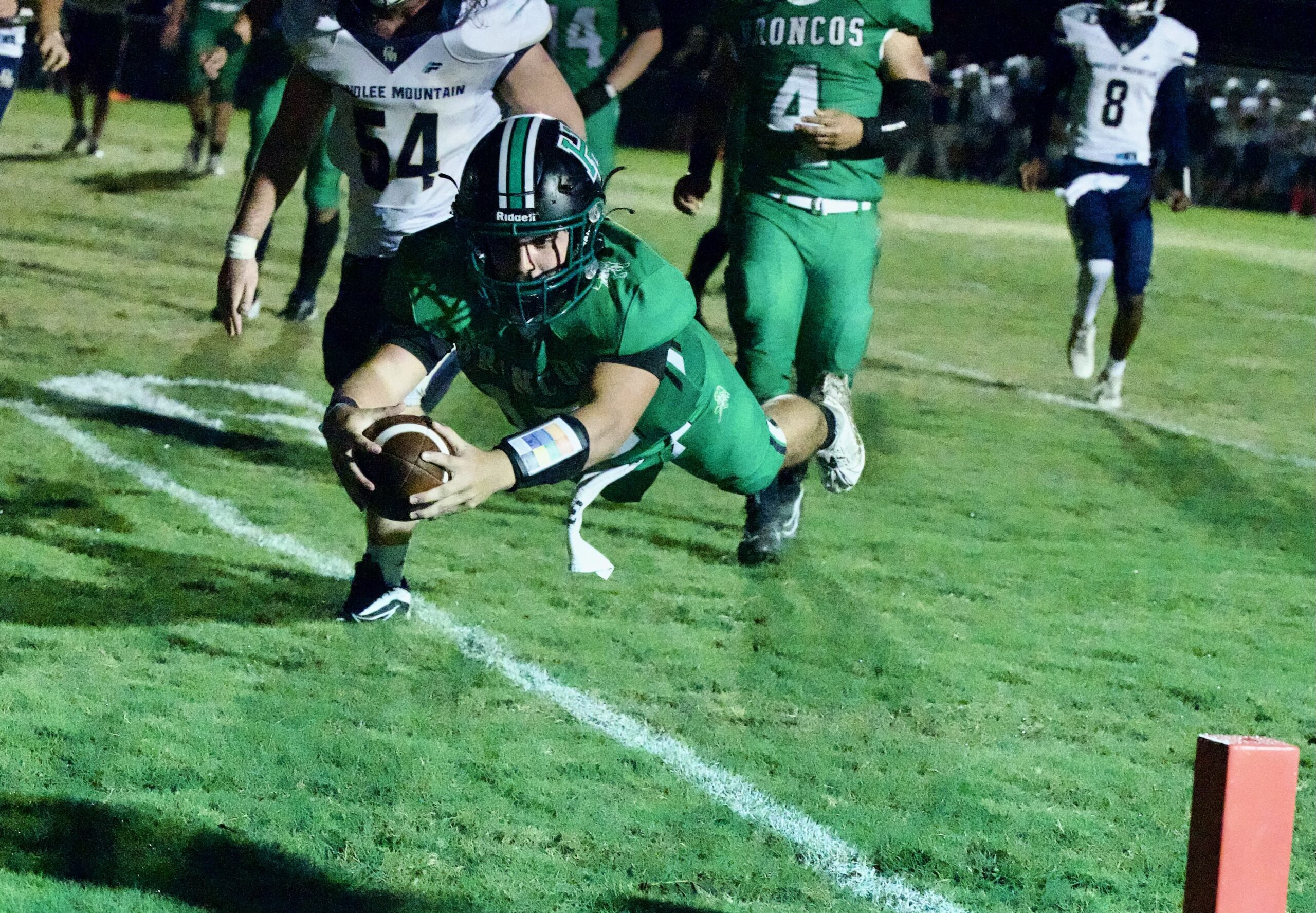 Olinger went 3/5 for 64 yards and a score and added 63 more on the ground and a pair of touchdowns for Holly Pond (2-2, 1-1). Gibbs collected 82 yards on the ground and a touchdown. Howard added 48 rushing yards and a touchdown and finished with the 21-yard receiving touchdown. Faulkner ended up with 26 yards on the ground and a touchdown. Motsinger, Marks, Jordan, and Anthony Reyes all had fumble recoveries in the game for the Broncos.