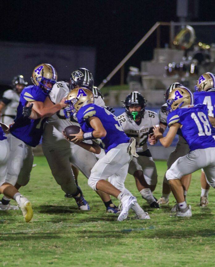 ADDISON, Ala. – Addison hosted the Hackleburg Panthers on a muggy night in lovely A.G. Hicks Stadium in a game with real region championship implications. It was a tale of two halves as Addison was thoroughly dominated in the first half but dominated the second half in turn.  Hackleburg built a big lead in the first and was able to hold on and win the game 30-14.