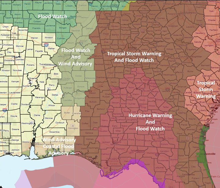 The good news for Alabama is that the eastward shift in track and slightly lower wind speeds have somewhat lessened impacts to the eastern sections of the state. Still, winds will be on the increase with gusts from 25-35 mph this afternoon south of I-20 and near 40 mph at the coast. From this evening through early Friday, statewide gusts will be 25-35 mph and 35-40 mph in far eastern Alabama. From Friday morning through the afternoon, statewide gusts will be 25-35 mph. All gusts will drop below 30 mph after 7 pm Friday.