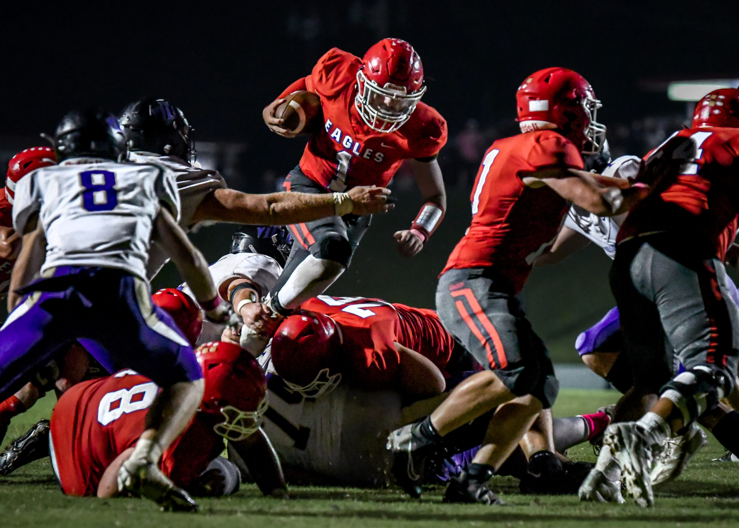 VINEMONT, Ala. – The Vinemont Eagles were back home to host a county clash with the Hanceville Bulldogs Friday night, and it was an exciting battle between these two local squads. The score was knotted at 24 at halftime but the Eagles outscored the Bulldogs 32-6 in the second half to pull away with a 56-30 win.