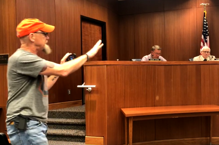 Council President Jenny Folsom informed Ogstad that he had exceeded the allotted time for individuals to speak, and (now former) Police Chief Kenny Culpepper escorted him from the building after he went to the front of the auditorium to deliver his notice and engage in another verbal exchange with the council.