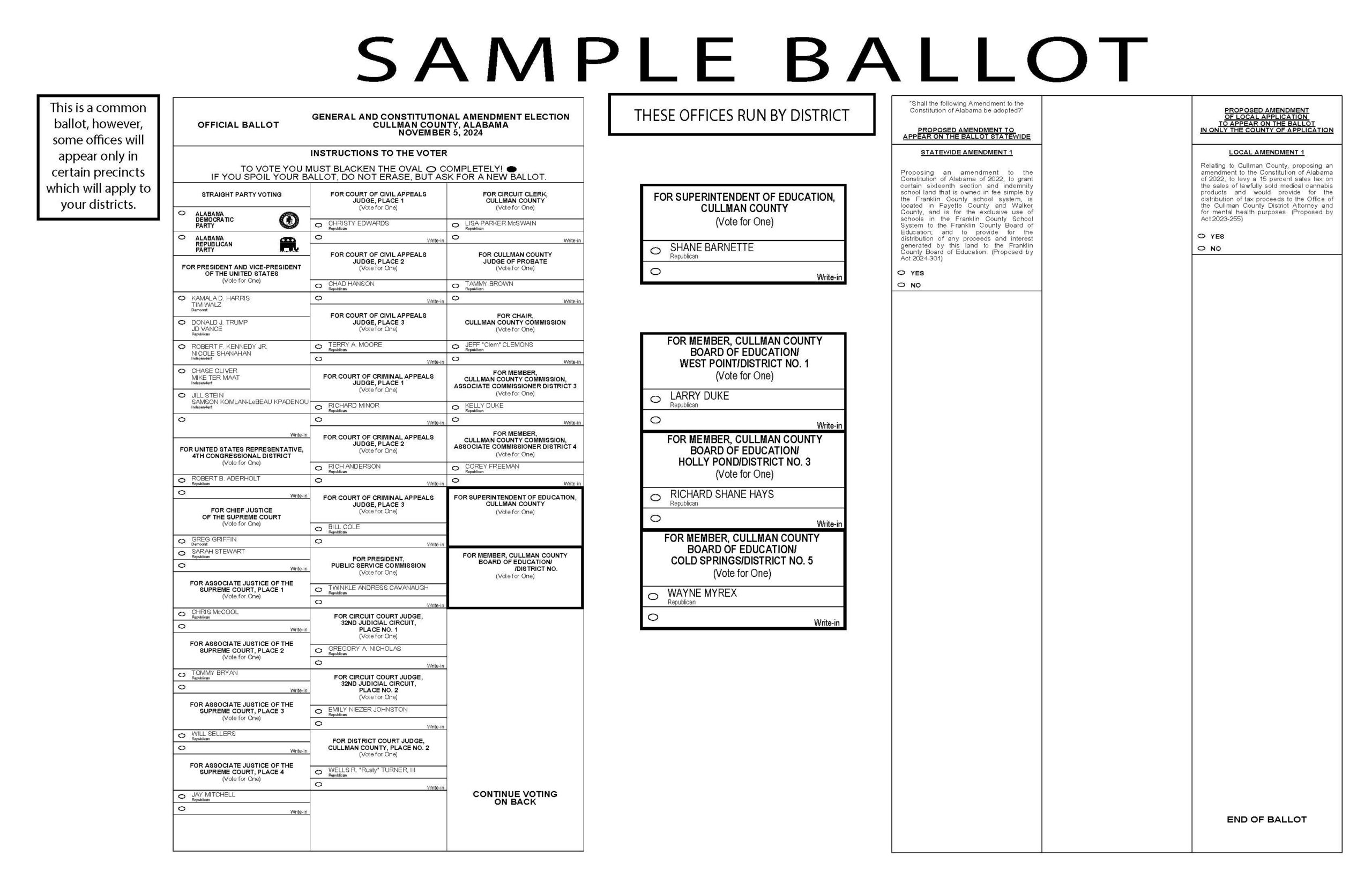 For all other races, see the sample ballot provided in this edition of The Cullman Tribune and at www.sos.alabama.gov/sites/default/files/sample-ballots/2024/gen/Cullman-Sample.pdf.