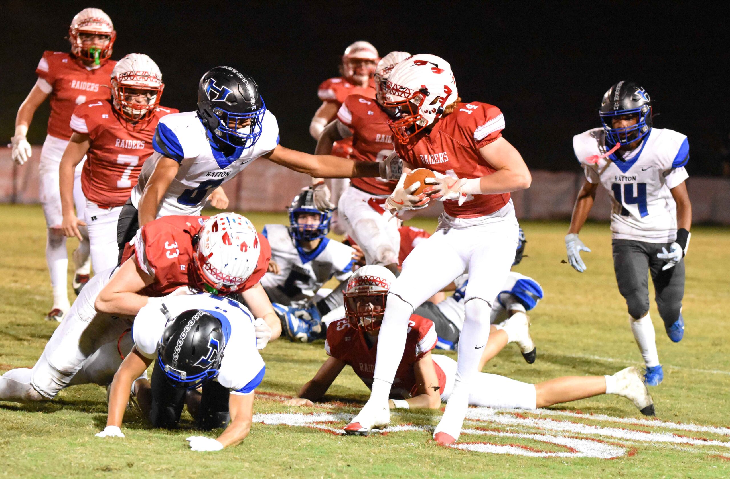Good Hope pounded the ball right at Hatton’s defense to start out the second half, as Cone collected a pair of first downs during the drive. After finding Parker Johnson for 11 yards, Cone kept it on the next play and muscled his way through multiple Hornet tacklers to score from 27 yards out to push their lead to 21-6 with 6:42 remaining in the third quarter. The Raider defense quickly forced a turnover on its next series, as Drake picked off a Hatton pass and returned it all the way to the one. Cone punched it in on the first play to increase their lead to 28-6.