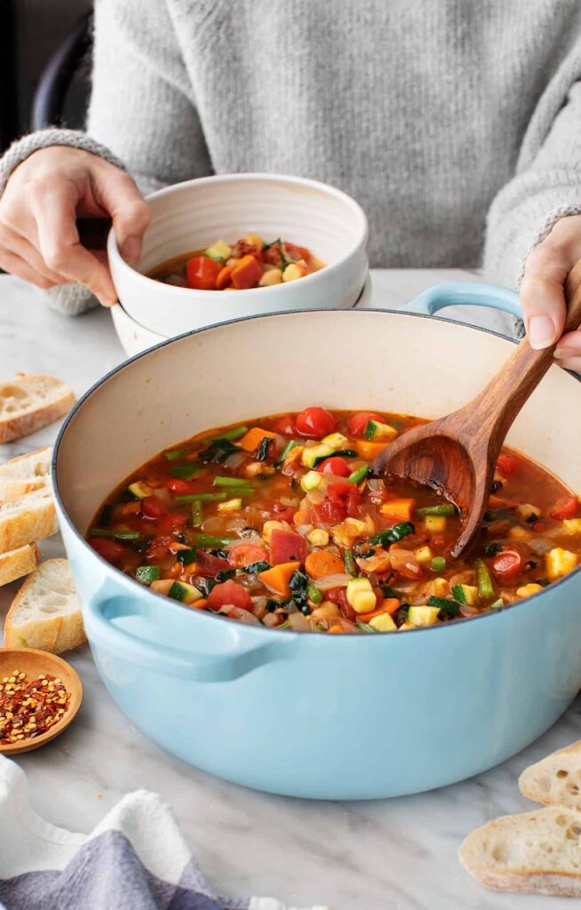 - Stir in the cherry tomatoes, green beans, zucchini, chickpeas, and cover and cook 10 to 15 more minutes, until the green beans are tender.