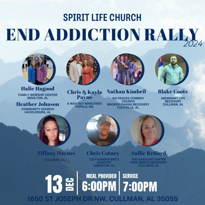CULLMAN, Ala. – On Friday, Dec. 13, Spirit Life Church Cullman will host the 2024 End Addiction Rally, a free event aimed at bringing the community together for an evening of “encouragement, connection and worship.”