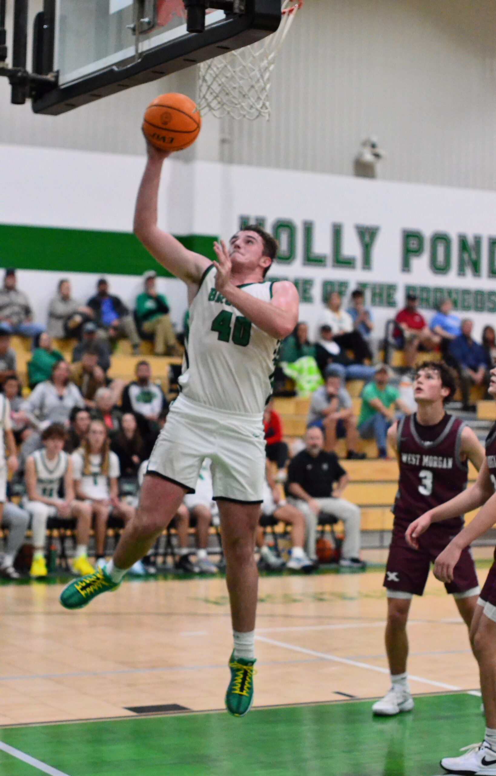 Cade Allbright scored 10 of the Broncos’ first 12 points to give them a 12-7 lead midway through the opening period but West Morgan closed the first quarter on a 5-0 run to tie the game at 12 at the start of the second.