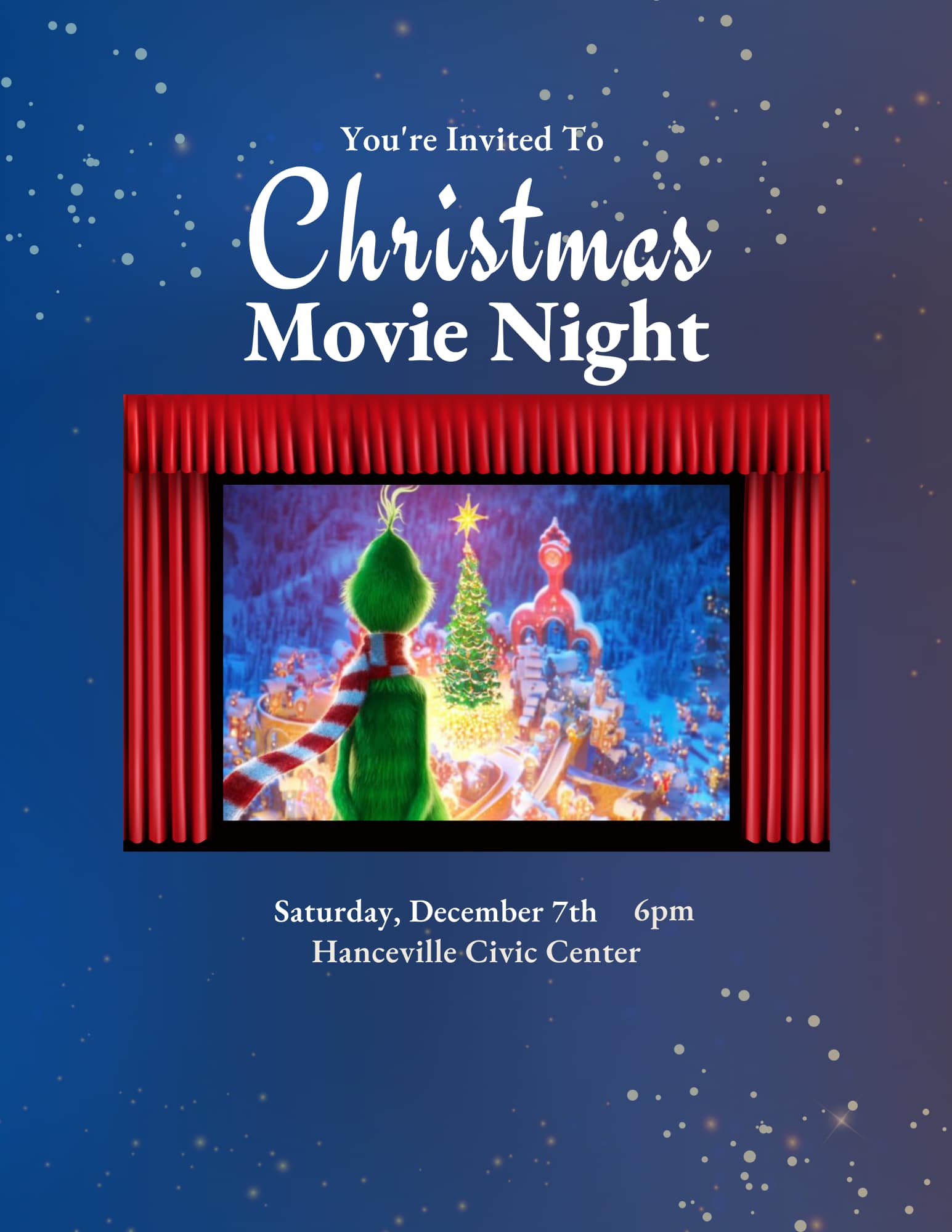 “We wanted to do something special for the community, and a movie night felt like the perfect way to bring families and friends together,” said David Wasilewski, director of Hanceville Parks and Recreation. “Hosting it indoors means families won’t have to worry about the cold, and the civic center will be decorated for Christmas atmosphere to make the evening even more memorable.”