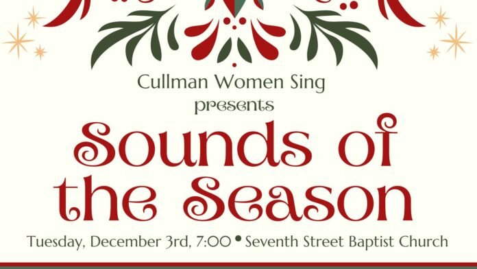 CULLMAN, Ala. – Cullman Women Sing will present its annual “Sounds of the Season” concert on Tuesday, Dec. 3, at 7 p.m. in the sanctuary of Seventh Street Baptist Church. This evening of Christmas and spiritual music is free to attend, though donations are appreciated.