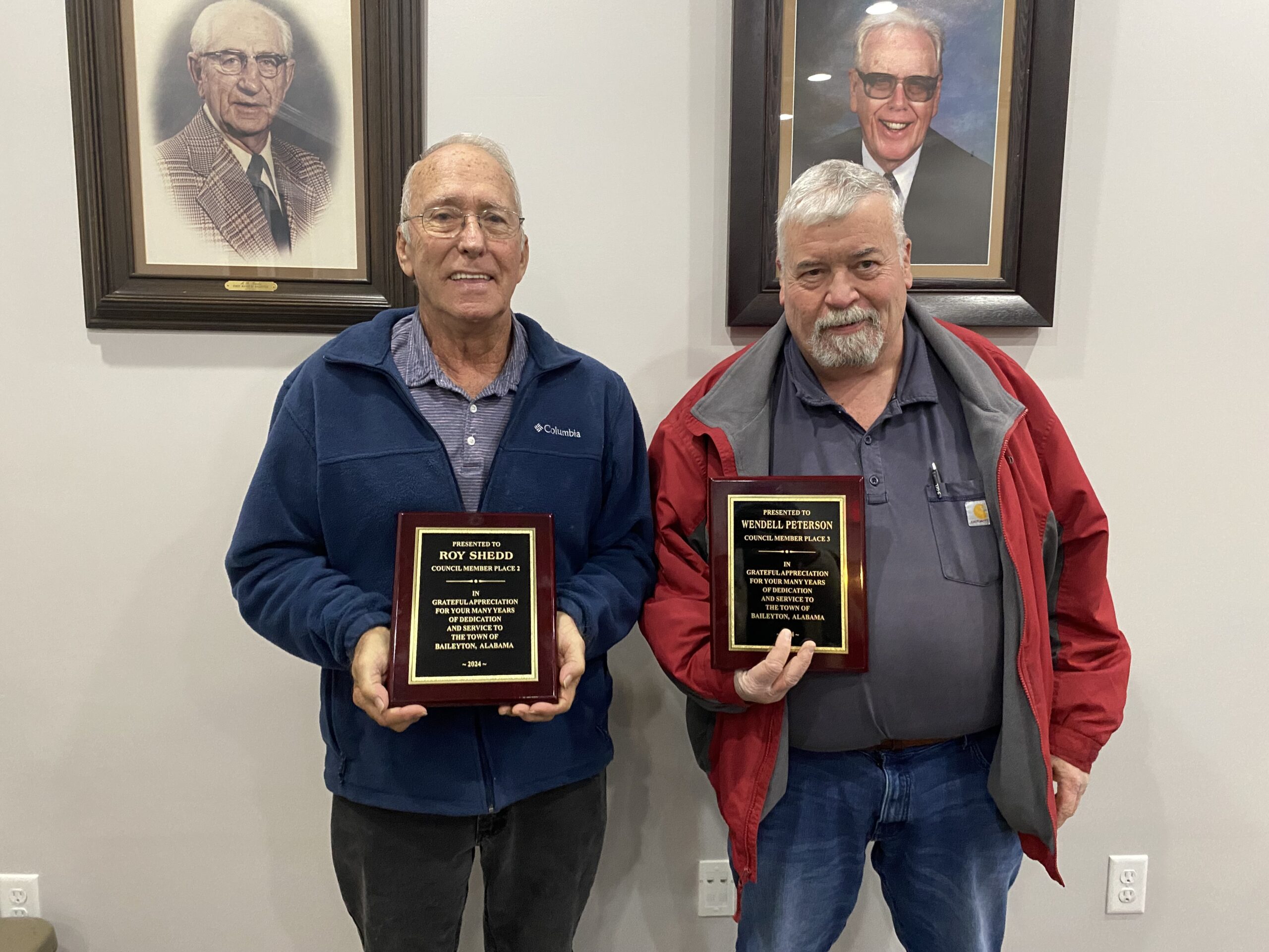 Following the swearing in of the new members, Calloway took a moment to honor outgoing councilmen Roy Shedd and Wendell Peterson for their years of dedicated service to the town. Shedd and Peterson were awarded plaques to commemorate their time as councilmen and thank them for the efforts they made to serve Baileyton. Both men’s resignations were announced at the council’s November meeting.