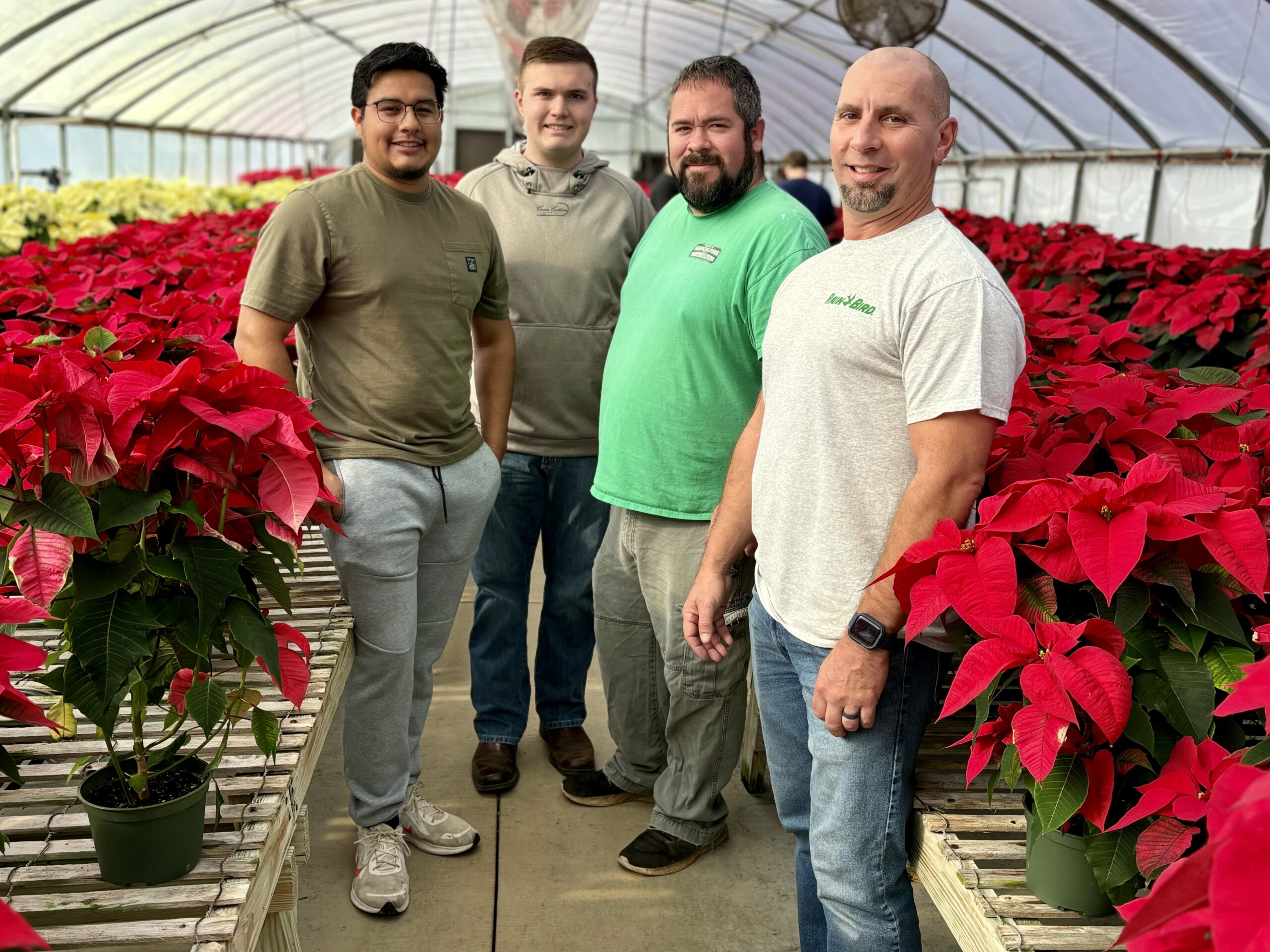 Left to right are students Jose Zatarain and Cooper Nichols, employee Joe Roberts and Agribusiness/Horticulture Program Director Jason Bynum. (Jen Baker)