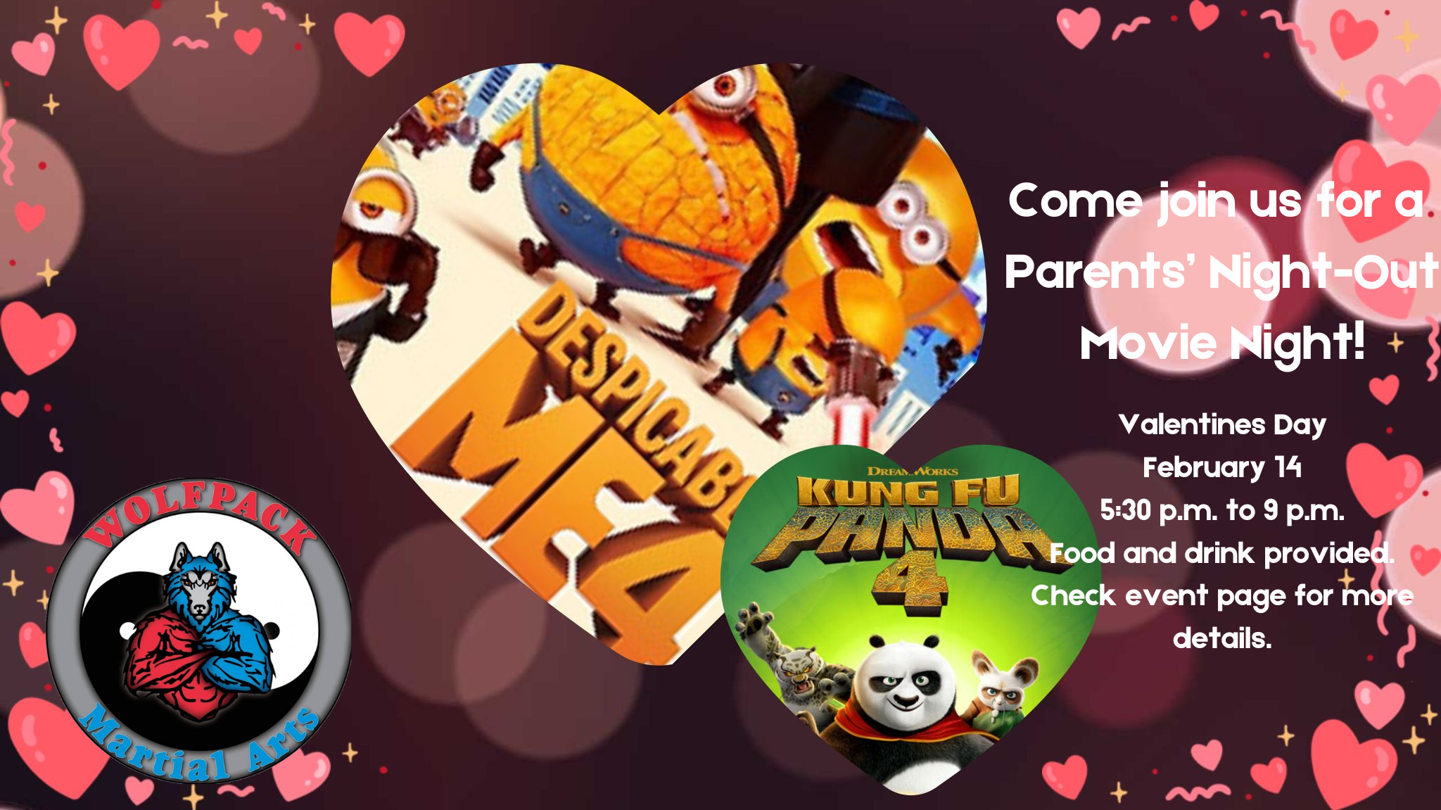 Wolfpack Martial Arts to host Parents’ Night Out Movie Night on Valentine’s Day