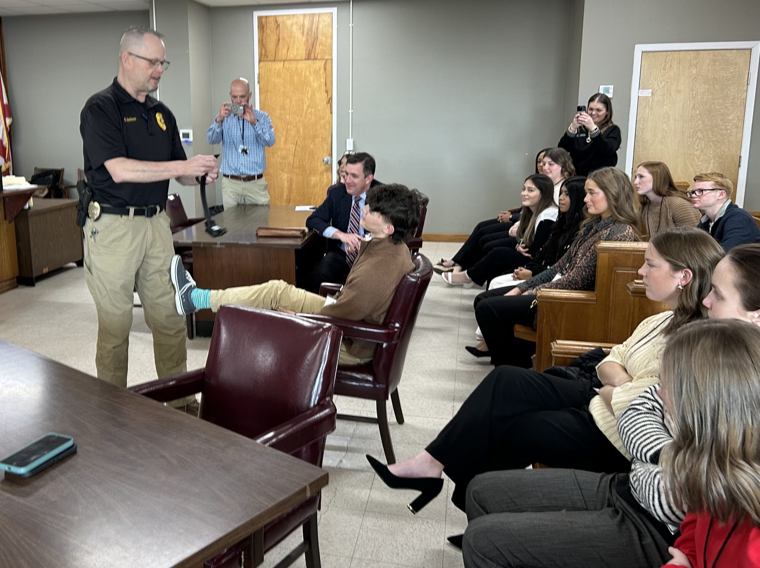 “Attorney Michael Thornton provided a defense for the accused,” Floyd said. “The defendant was played by Assistant District Attorney Mike Burleson. The victim was played by Community Corrections Director Cynthia Dodson. In addition to hearing from me, the children got to hear from District Attorney Champ Crocker, Defense Attorney Michael Thornton and Community Corrections Officer Craig Jackson.  The children asked great questions after the hearing to each of the presenters.”