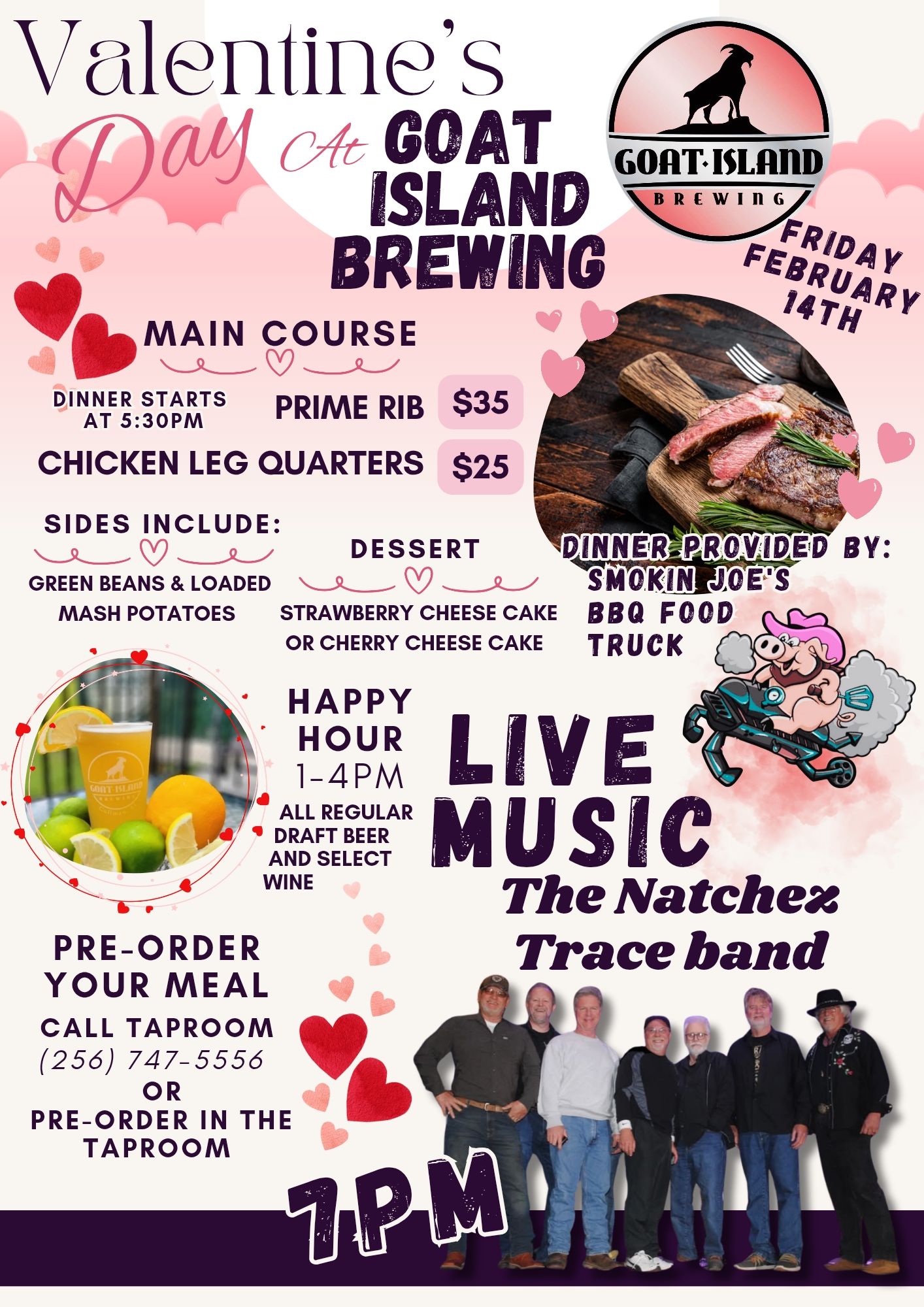 CULLMAN, Ala. – Goat Island Brewing will host a special Valentine’s Celebration for beer lovers and sweethearts alike.