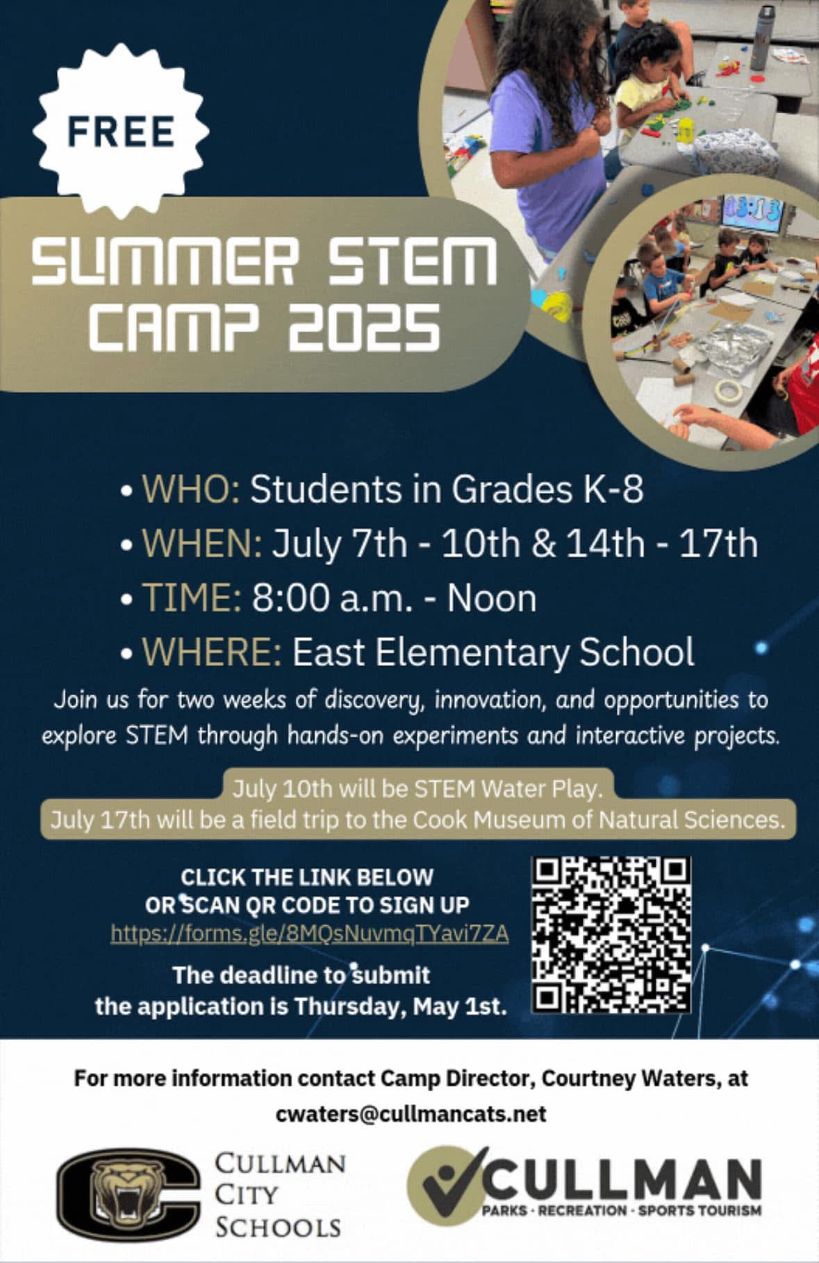 - Who can join: Students who have completed grades k-8 in Cullman City Schools