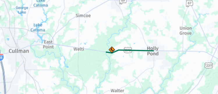 ALDOT advises motorists to expect single-lane closures controlled by flaggers or pilot car from 7 a.m. to 5 p.m. daily, weather permitting. Prepare for delays by planning additional travel time or alternate routes.