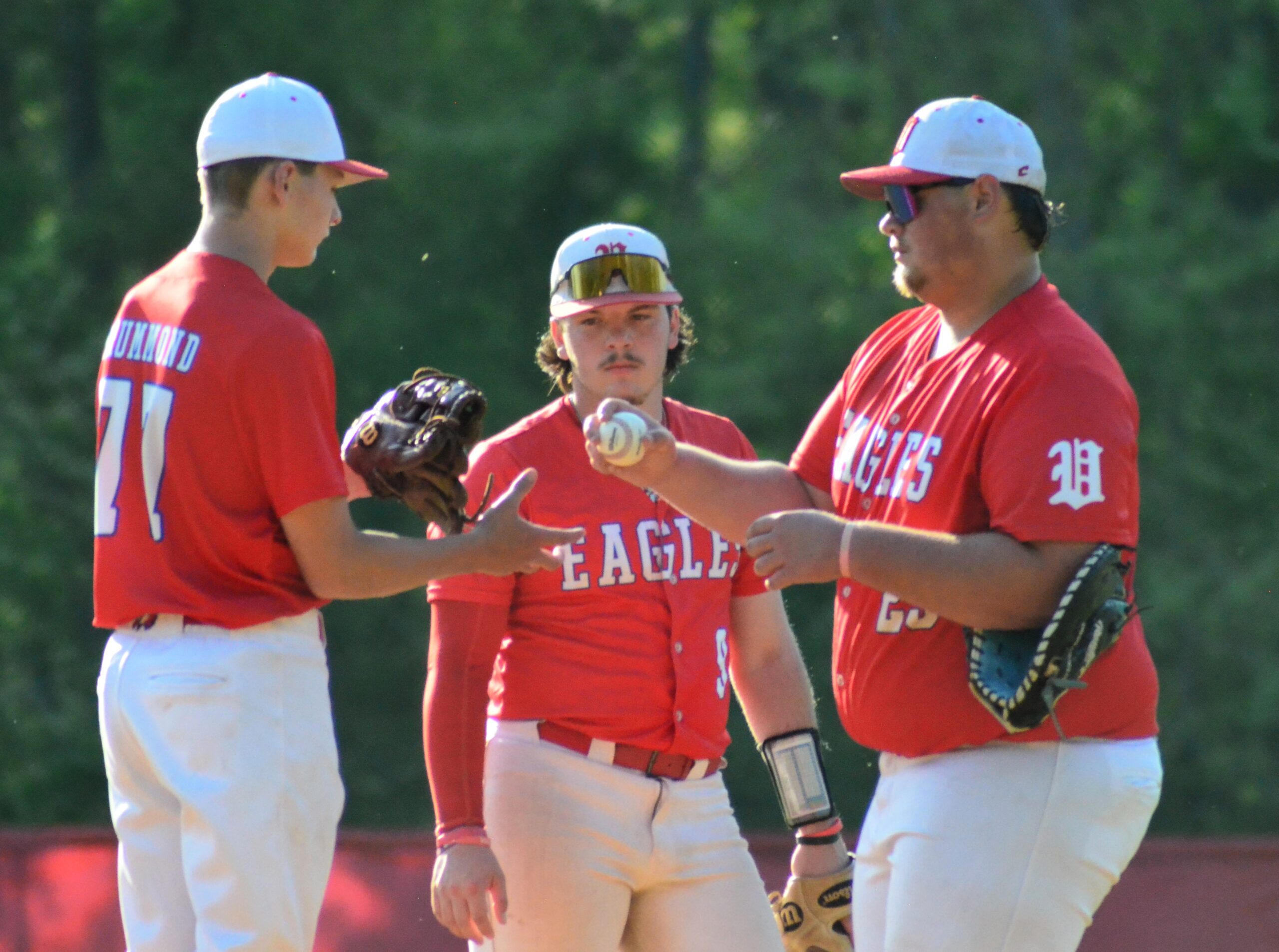 After a scoreless first inning, Randolph County strung together five hits in the top of the second to take an early, 6-0 lead over Vinemont. The Eagles were able to cut into the lead in the bottom of the third. Josh Rhodes led off the inning with a double to left field and a few pitches later, Kayden Henderson drove an RBI single down the left field line to trim the lead to 6-1. Rylan McRae and Rush Sandlin drew walks to load the bases later in the inning and Henderson scored on an error to make it a 6-2 game going into the fourth.