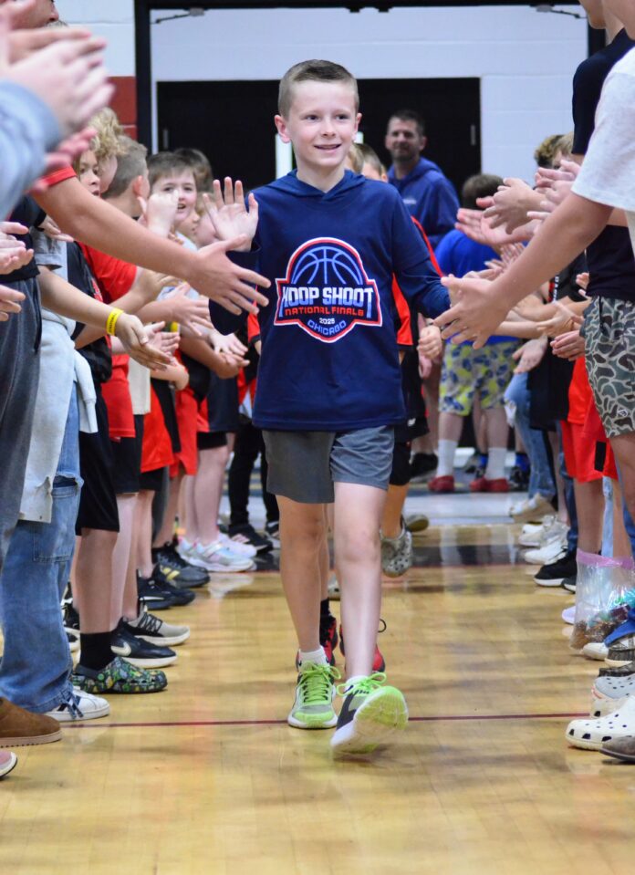 BAILEYTON, Ala. – Monday morning was a special one at Parkside School. Before school began, the gymnasium was packed with students waiting to surprise and celebrate third grader Paxton Plourd. Plourd was at Wintrust Arena in Chicago on Saturday competing in this year’s Elks Hoop Shoot national finals and he shot a perfect 25 of 25 from the free throw line to return home with a national championship. Since the competition began in 1972, Plourd is just the third national winner from Alabama and the second from Cullman.