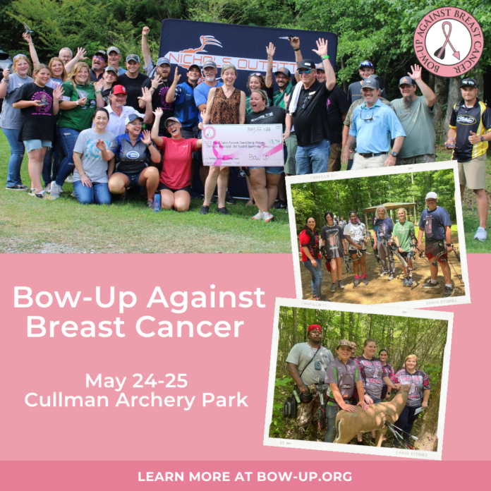 CULLMAN, Ala. – The 14th annual Bow-Up Against Breast Cancer 3D Archery Tournament is scheduled for Memorial Day weekend, May 24-25, at the Cullman Community Archery Park. Hosted by the Heritage Archery Club and the Bowhunters of Alabama, the event welcomes archers of all ages and skill levels to compete in support of the Breast Cancer Research Foundation of Alabama (BCRFA).