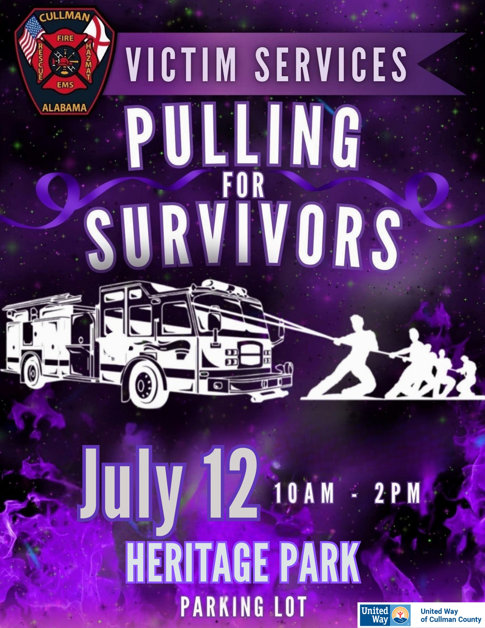 CULLMAN, Ala. – Victim Services of Cullman will host its first-ever Pulling for Survivors fire truck pull event on Saturday, July 12, from 10 a.m.-2 p.m. at Heritage Park. The family friendly event is both a fundraiser and a show of support for community survivors of domestic violence.