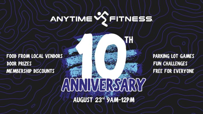 CULLMAN, Ala. – With 10 years of success under its belt, Anytime Fitness Cullman is celebrating the major milestone with a party for the whole community. On Saturday, Aug. 23, the gym will host its 10th Anniversary Celebration in its parking lot from 9 a.m.-noon inviting members, non-members, families and friends to join in a free, fitness-themed block party.