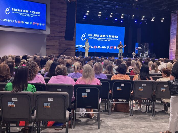Teachers were treated to a meal and giveaways, and there were booths manned by sponsors including First National Bank, the Alabama Education Association, the Cullman Electric Cooperative and United Way of Cullman County.