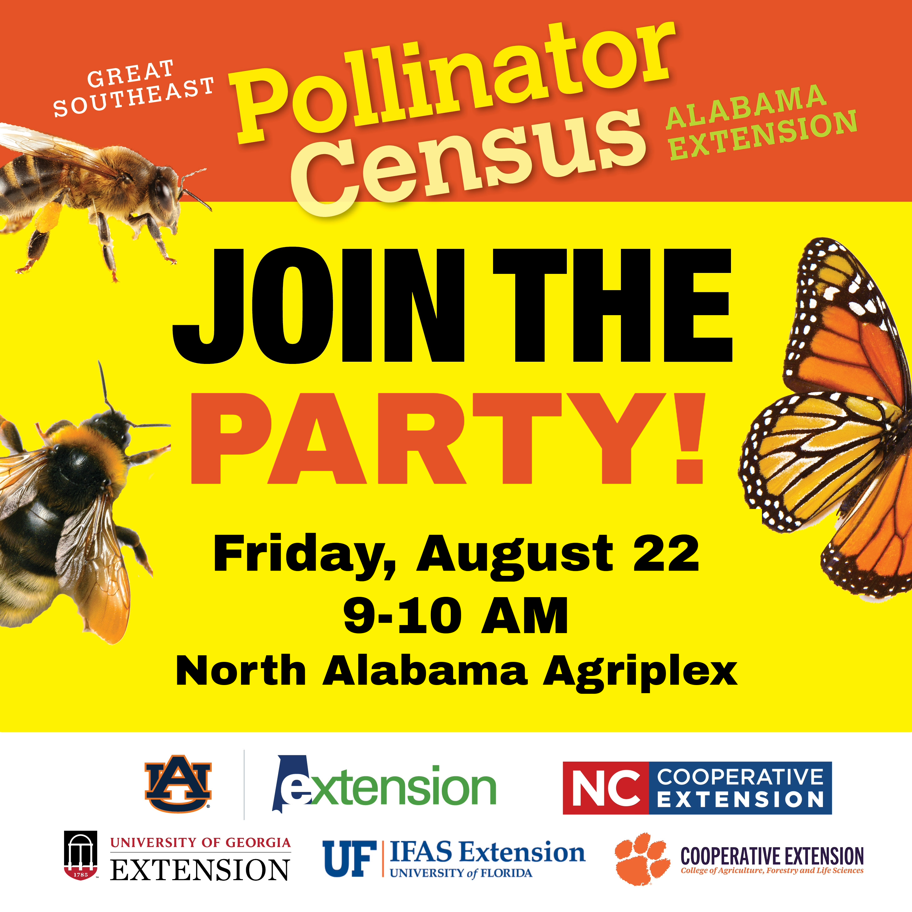 CULLMAN, Ala. – The Cullman County Extension Office and the North Alabama Agriplex will host a Pollinator Count Party on Friday, Aug. 22, from 9–10 a.m. at the Agriplex as part of the Great Southeast Pollinator Census, a large-scale science project taking place across the region Aug. 22–23. The event is free for anyone who wants to attend.