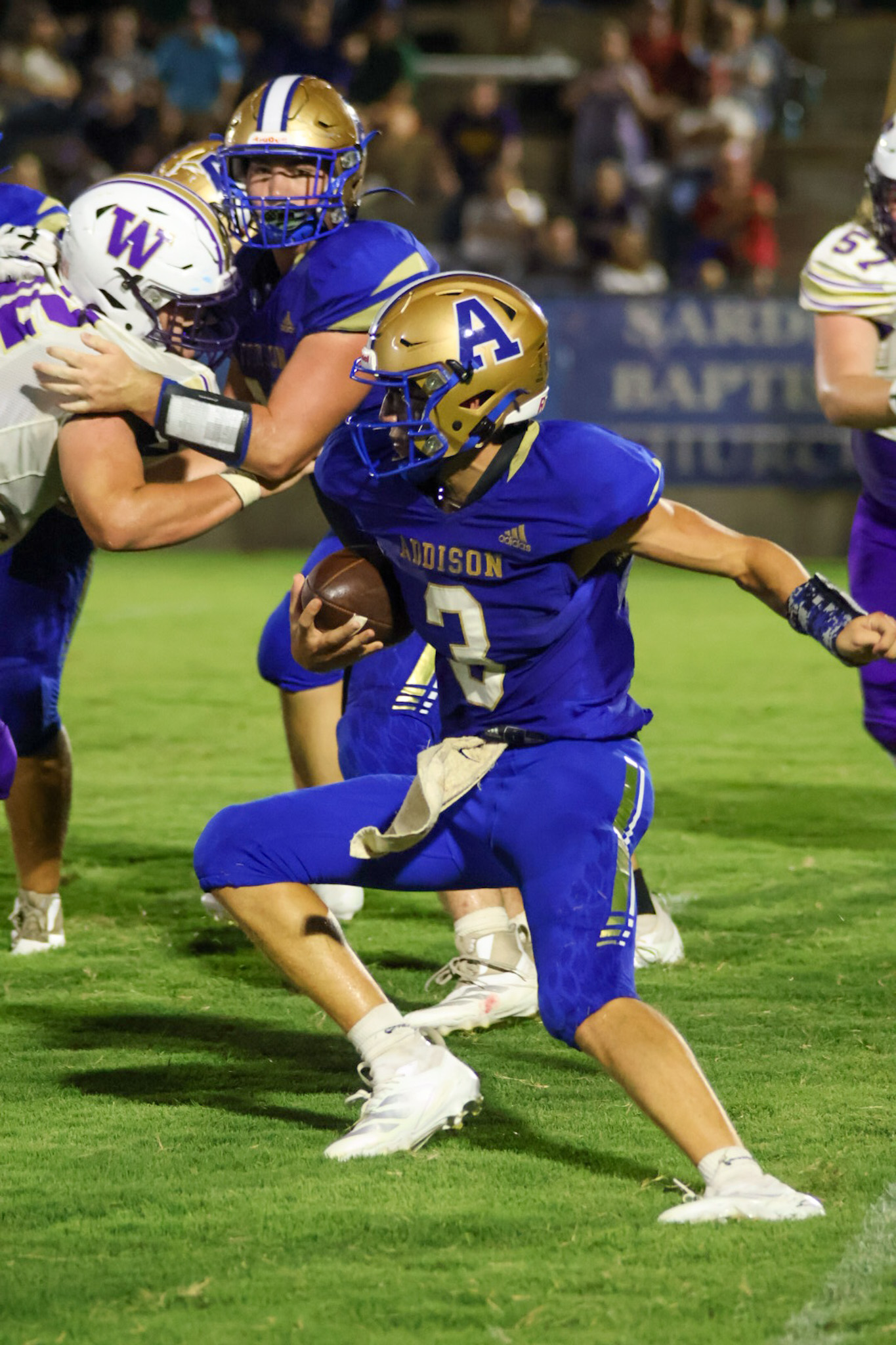 WCHS was led by Elliott with 7 tackles and recovered a fumble. Watts had 6 tackles. Colton Rumpke had 5 tackles. Aderholt had 3 tackles. Allister Atkins, Kyler Grace and Moore had 2 tackles each.