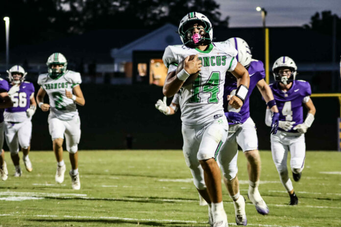 HANCEVILLE, Ala. – Holly Pond traveled to Ray Talley Stadium for a county matchup against the Hanceville Bulldogs Friday night and defense was almost nowhere to be found in this one. Both teams combined to score 85 points in the first half with Holly Pond leading the way 50-35 at the break. The Broncos tacked on 24 more points in the second half to continue lighting up the scoreboard and pull away with a 74-41 win over the Bulldogs.