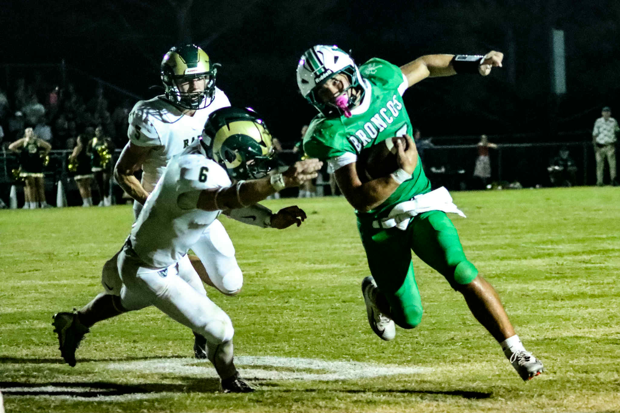 However, the Broncos still had some big plays left in them and Miguel Garcia returned the ensuing kickoff back 75 yards to set up Holly Pond’s offense deep in Rams territory with 1:24 to play. A couple of plays later, Gibbs scored from 7 yards out with 25 seconds on the clock to secure a dramatic, 24-21 region win for the Broncos.