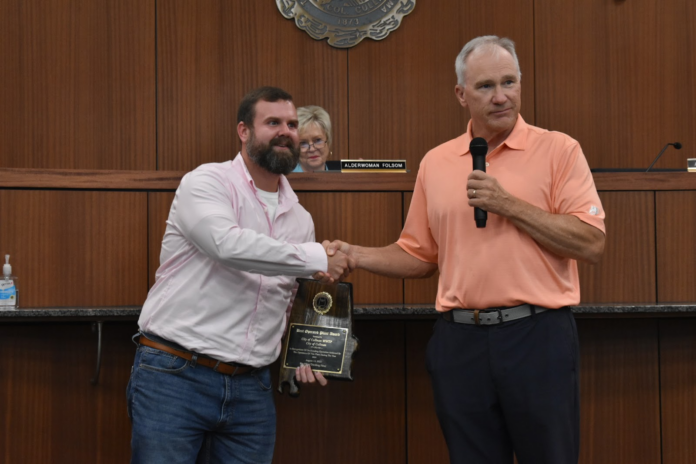 CULLMAN, Ala. – The Cullman City Council on Monday evening recognized the Cullman Wastewater Treatment Plant for achieving top ranking in the state among facilities using bio-filter/trickling filter systems. Councilman and Utilities Committee Chairman David Moss presented the Alabama Water and Pollution Control Association’s 2025 “Best Operated Plant Award” plaque to Plant Superintendent Jake Calloway.